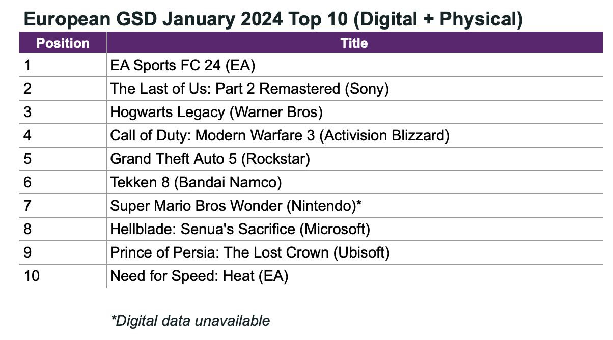 - GSD & GfK: PC/console game sales in Europe in January 2024 decreased by 7%