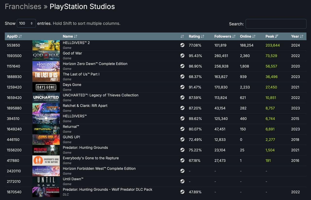 The previous record for PlayStation Studios belonged to God of War, which had over 73 thousand users playing simultaneously.