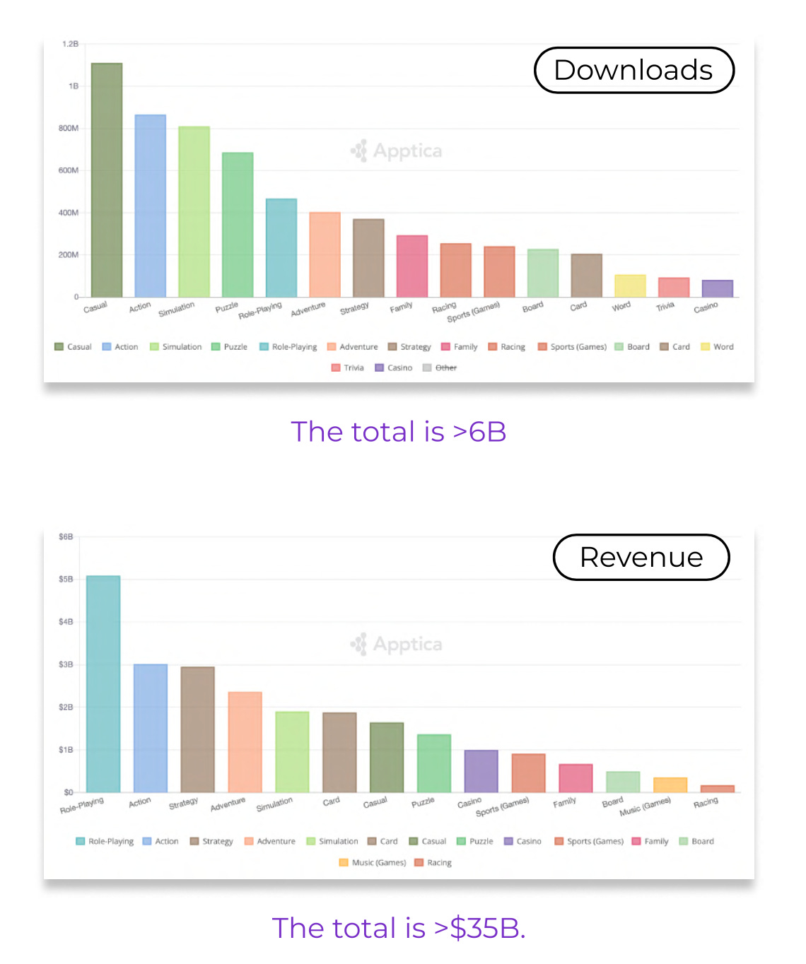 Revenue from iOS games in 2023 was just over $35 billion (-6.7% from the previous year). The RPG genre saw the sharpest decline, by 12%, but it still remains the largest.