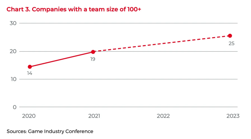 • Pixel Federation, QORPO, PowerPlay Studio, SuperScale, and Inlogic Software are leaders by number of employees.