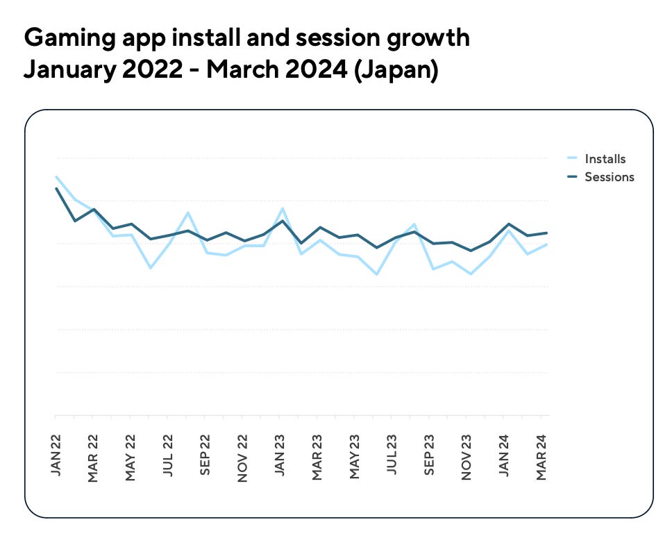 Game downloads in Japan began to decline in early 2022, with the drop stabilizing by 2023. In Q1’24, according to Adjust, downloads increased by 18% compared to Q4’23. The number of sessions also increased by 1% over the same period.