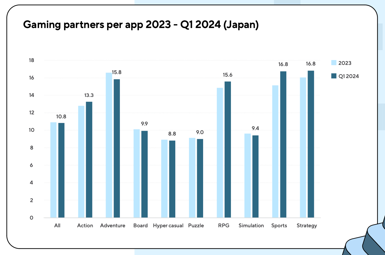 - The number of advertising partners remained stable, slightly decreasing from an average of 10.9 in 2023 to 10.8 in Q1’24. This suggests companies prefer to spend more on established channels.