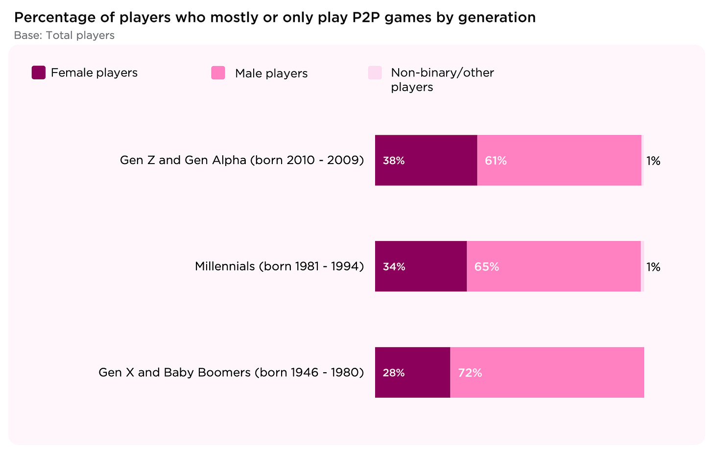 The percentage of the female audience willing to pay for games grows from generation to generation.