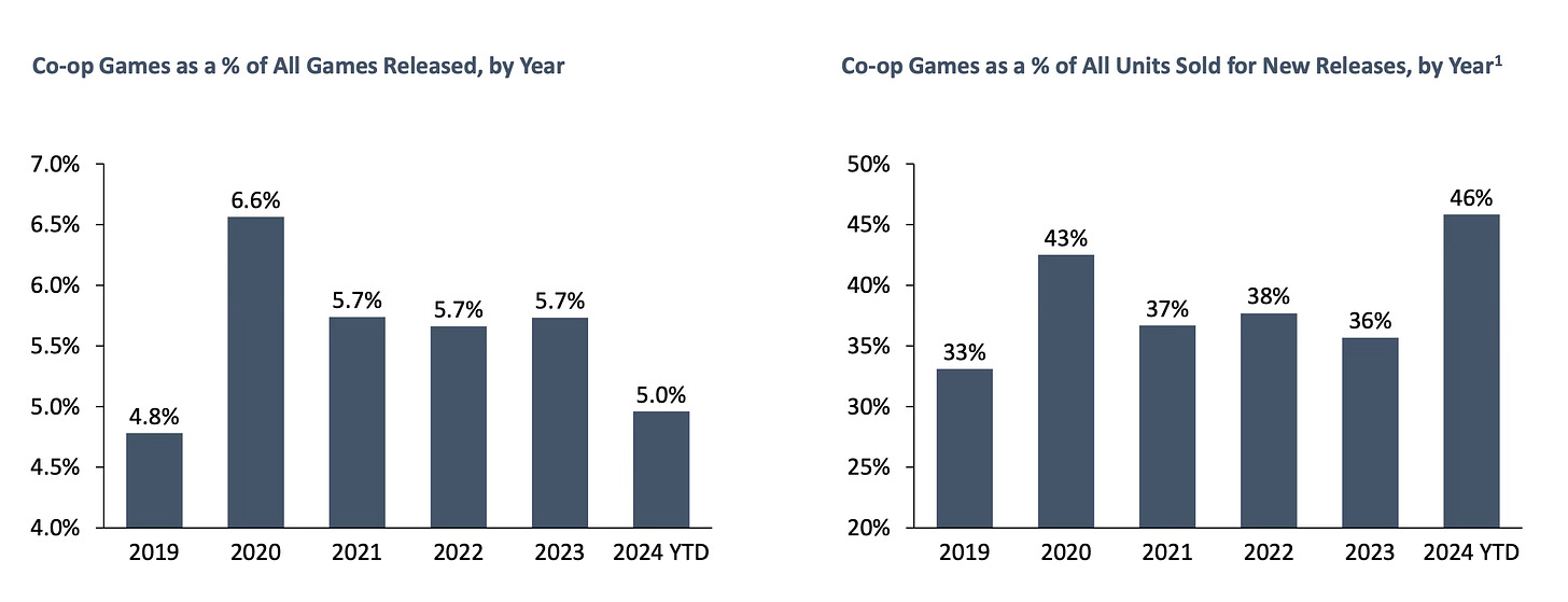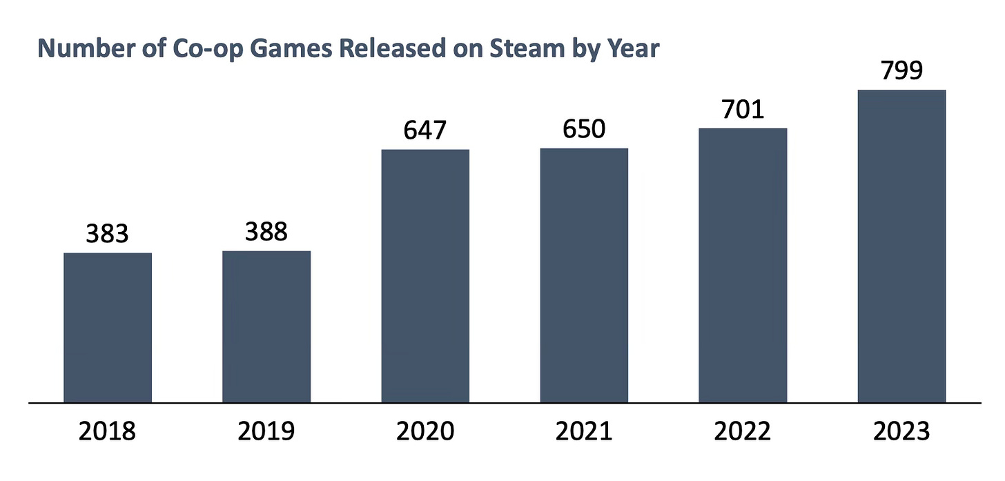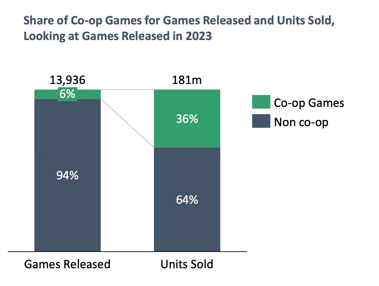 In 2023, cooperative games accounted for 6% of the total number of games released on Steam. At the same time, they made up 36% of all units sold.
