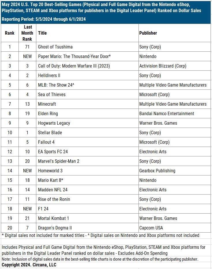 ❗️Palworld is not on the list because the company does not share sales data with GSD. Therefore, actual sales may be higher.