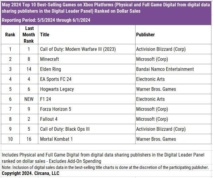 Sales of Elden Ring increased by 454% thanks to the release of the DLC Shadow of the Erdtree. The game ranked second in the June chart.