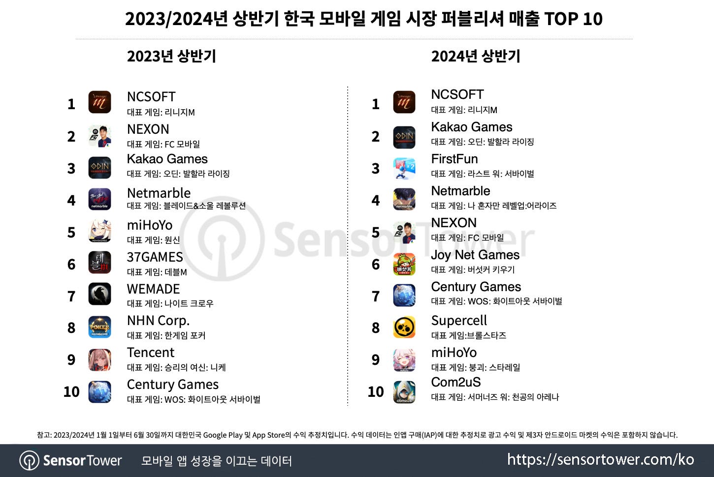 - Sensor Tower: Korean Mobile Gaming Market in H1'2024