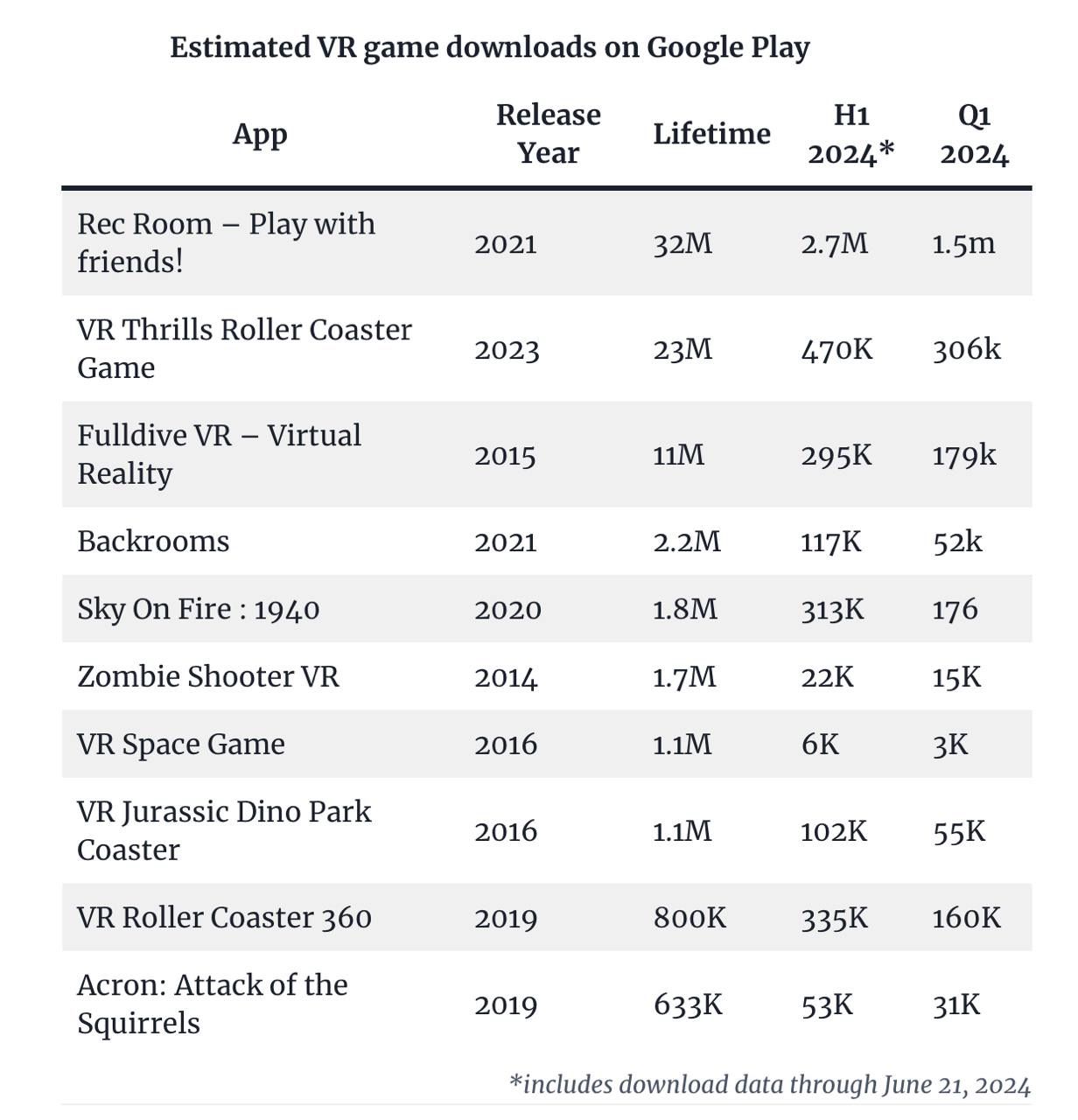 - Splitmetrics: VR games Downloads on Android grew by 40% in H1'24
