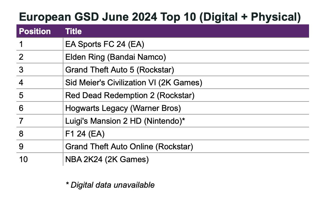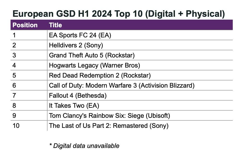 - GSD & GfK: PC & Console Games Sales in Europe in June 2024 and H1'24