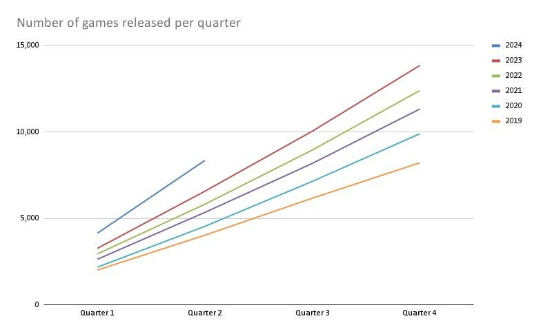 In the first half of 2024, 8362 games were released on Steam. This is 27% more than the same period in 2023.