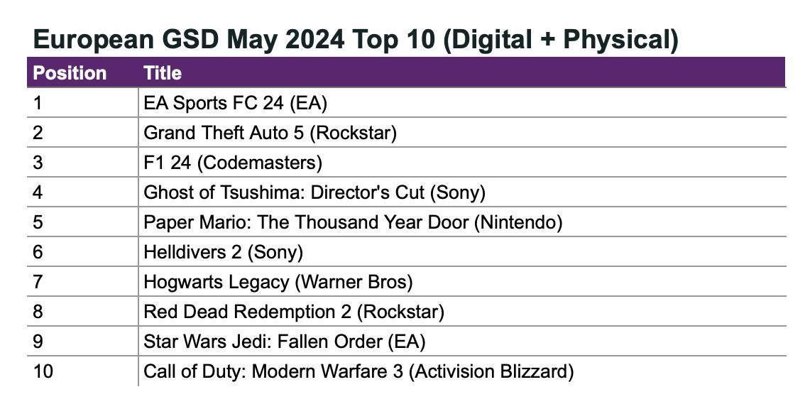- GSD & GfK: Game sales in Europe in May 2024 fell by 17%