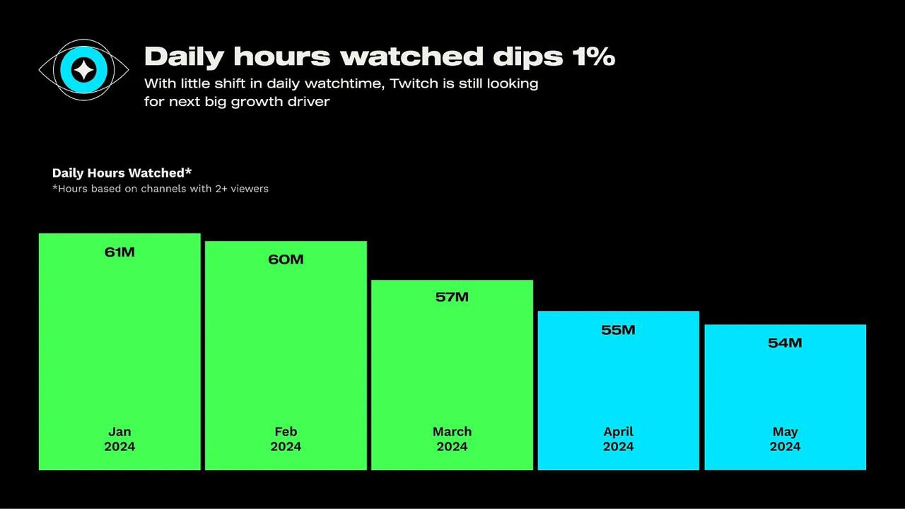 In May 2024, Twitch accumulated 1.679 billion hours of watch time. Analysts from StreamElements and Rainmaker.gg compare this to May 2019, when Twitch had 940 million hours. A significant increase.