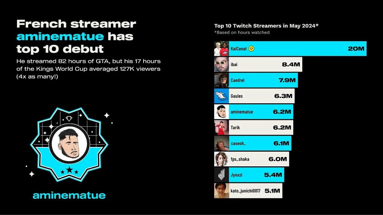 By the end of the month, KaiCenat became the most-watched gaming streamer, with over 20 million hours of watch time.