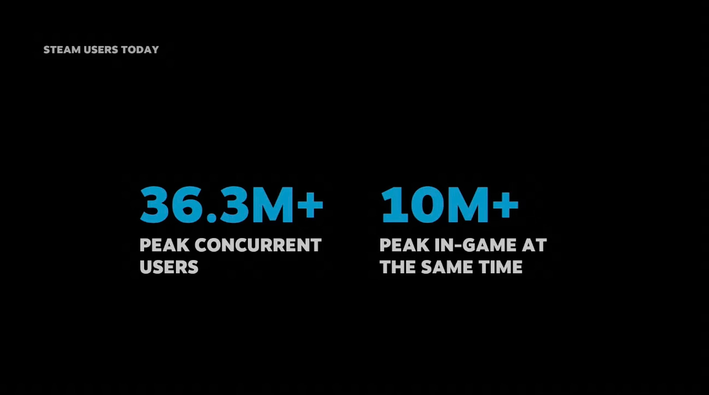 The peak number of concurrent users on Steam reached 36.3 million.