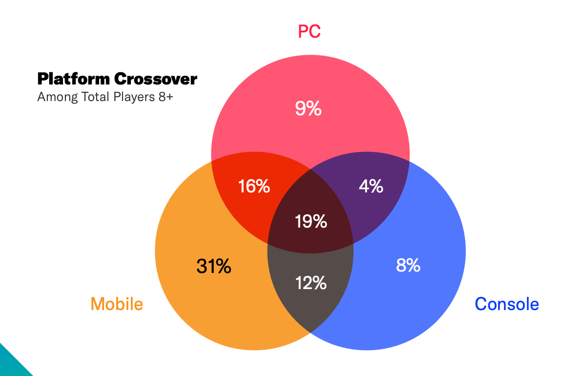 19% of players over 8 years old have mobile devices, PCs, and consoles at home.