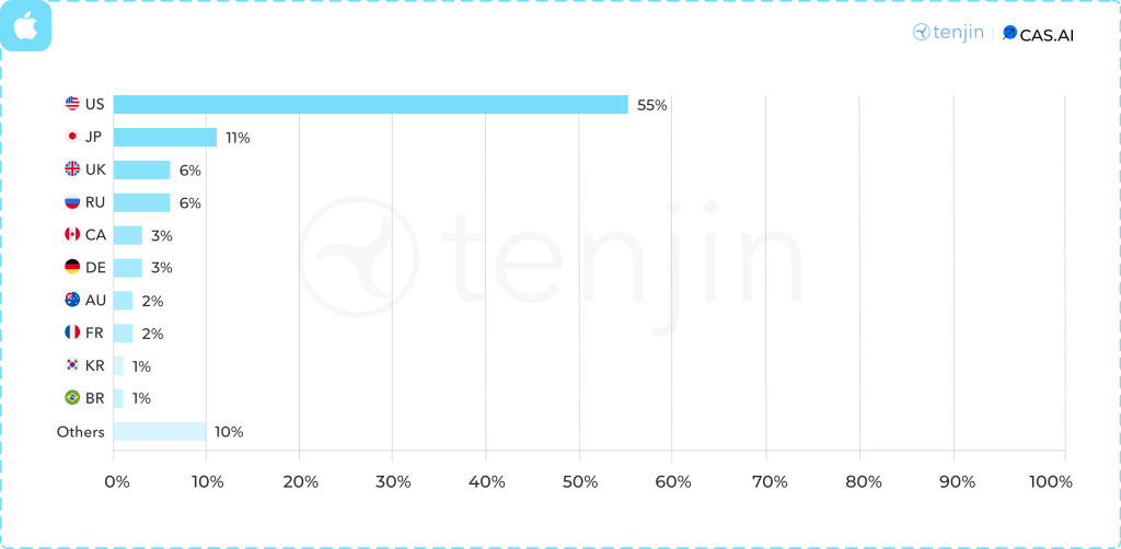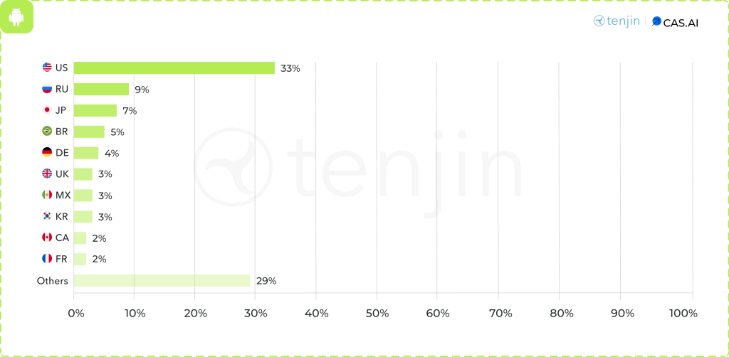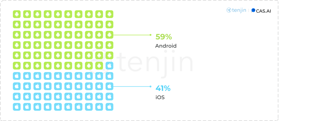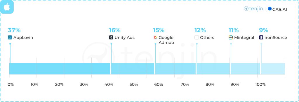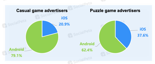 Speaking of the casual market, the share of advertisers on iOS is 20.9%. For puzzles, the situation is quite different - 37.6% of advertisers are on iOS.