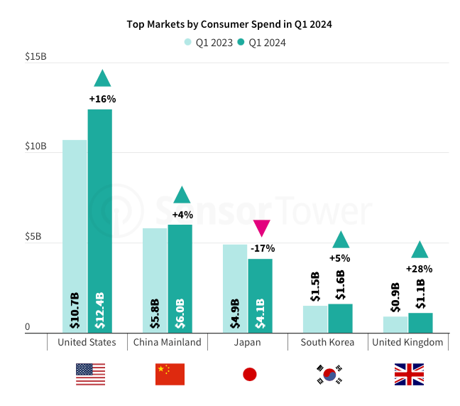 Sensor Tower: Mobile (Gaming) Market in Q1'24
