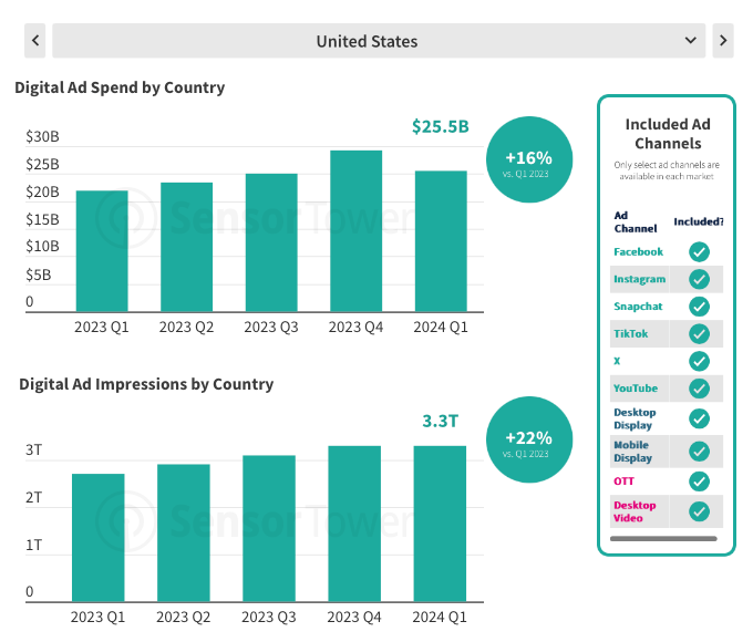 The number of advertisers in the casual and puzzle segments increased by 0.83% and 2.1% respectively in Q1’24. The number of creatives grew by 1.97% YoY in the casual segment and by 1.17% in the puzzle segment.