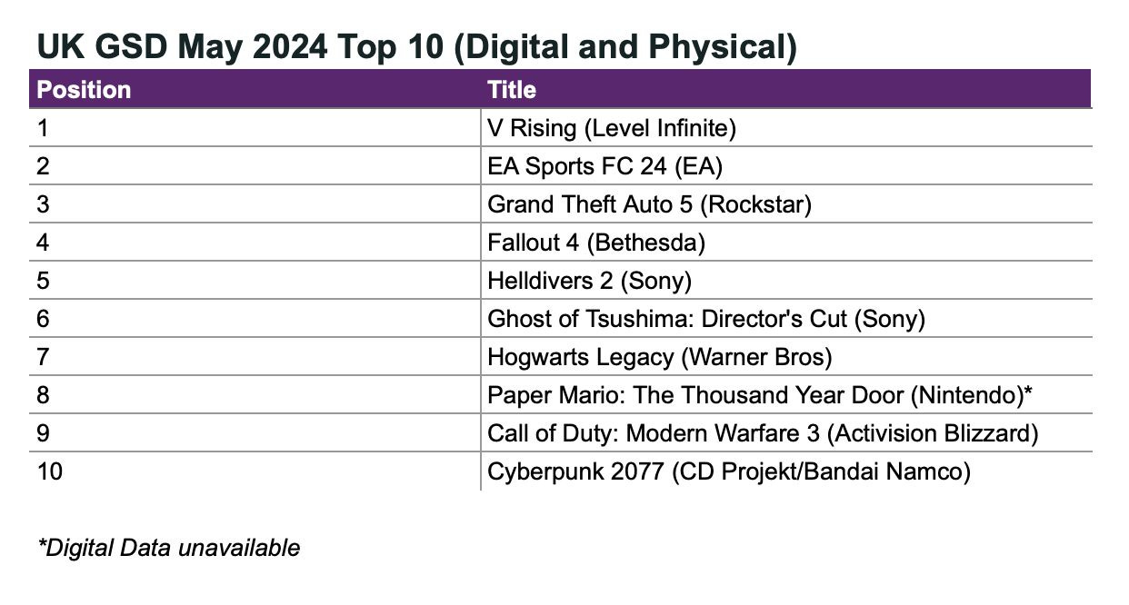 - GSD & GfK: V Rising Leads the UK Market in May 2024