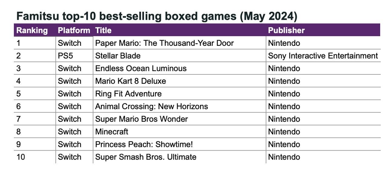 - Famitsu: Paper Mario: The Thousand-Year Door topped the Japanese retail chart in May 2024