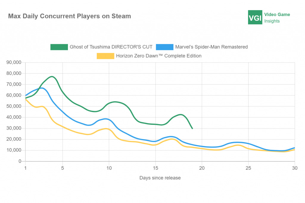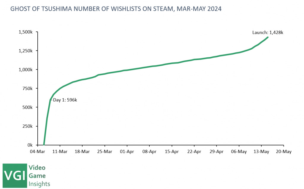 - F1 2024 started in the 3rd position, but its initial sales were 35% worse than its predecessor. The release of Ghost of Tsushima on PC allowed the game to climb to the 4th position.