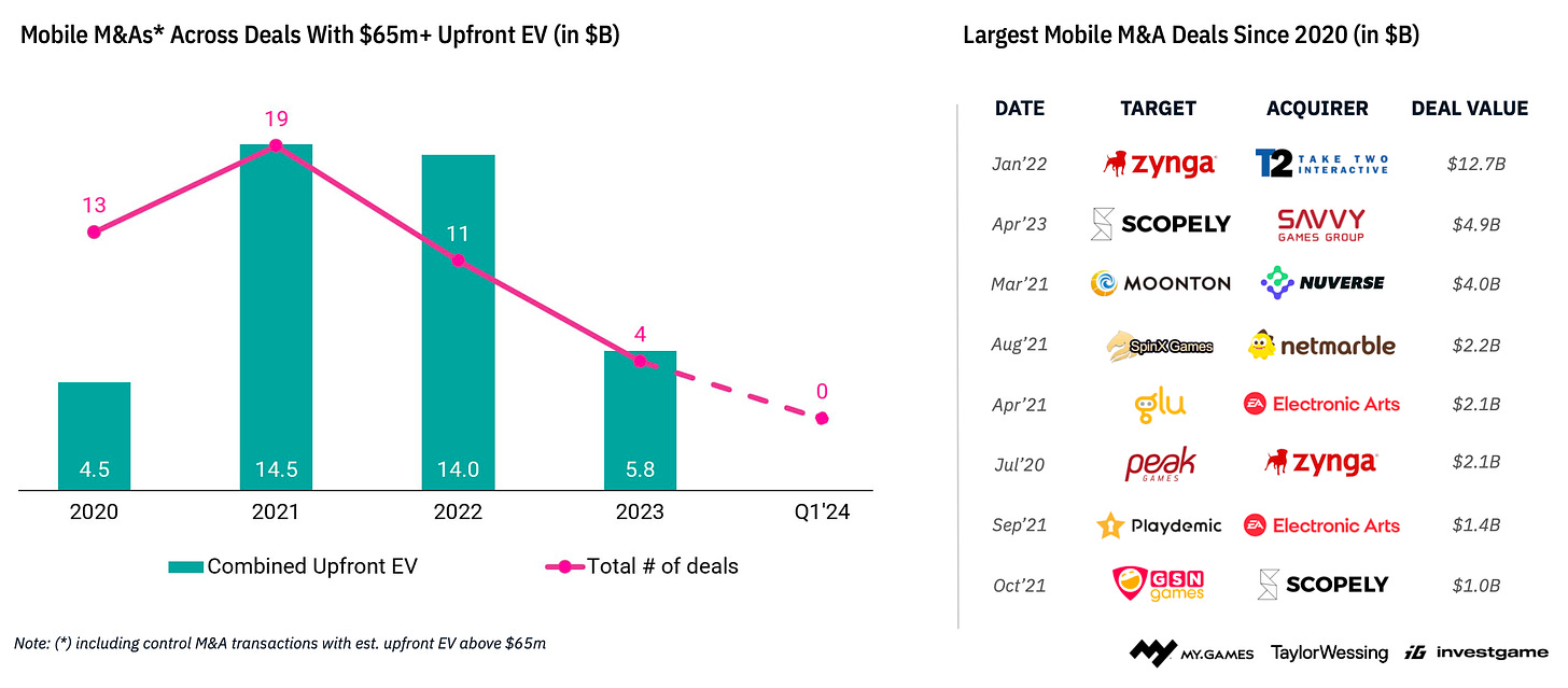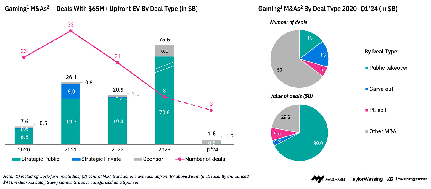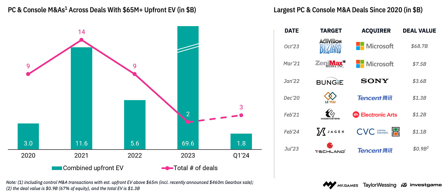Meanwhile, there have been 37 deals totaling $91 billion for PC/console developers since 2020.