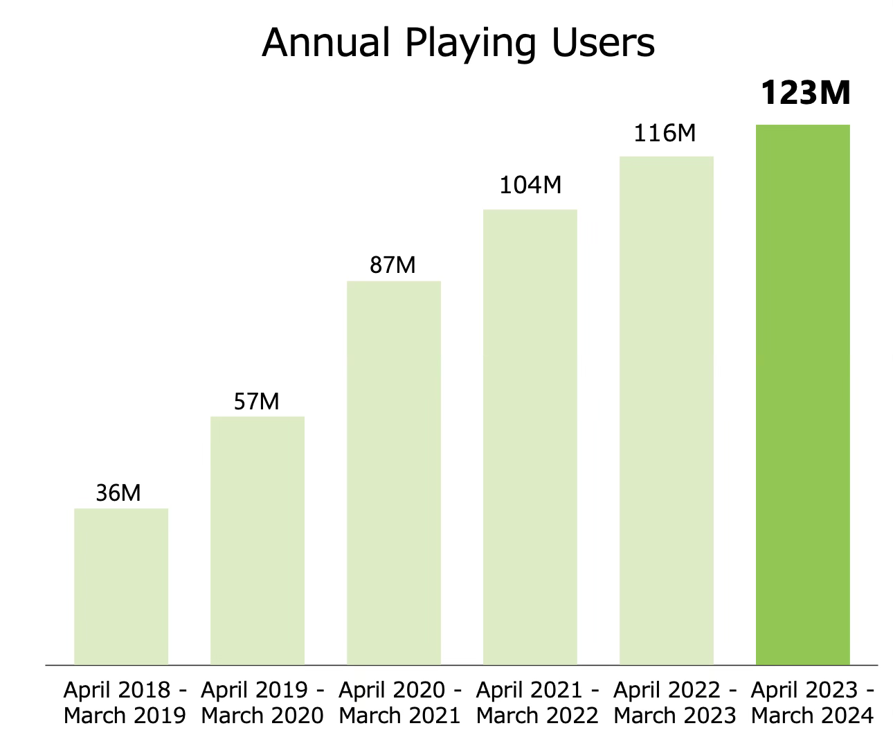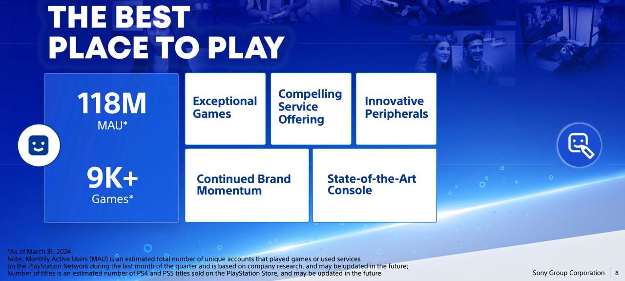 As of March 2024, PlayStation platforms had 118 million MAU (unique accounts are counted).