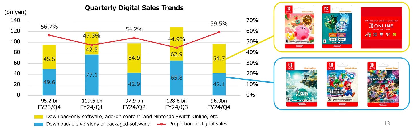 The number of digital version sales is increasing, but the rate of replacing boxed versions of games has slowed down.