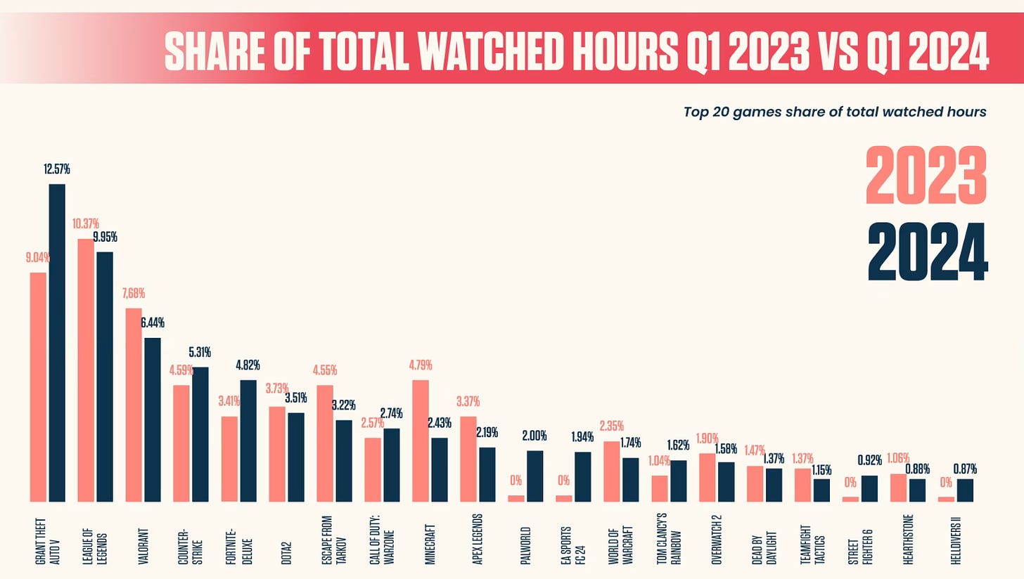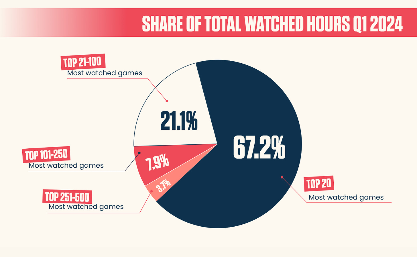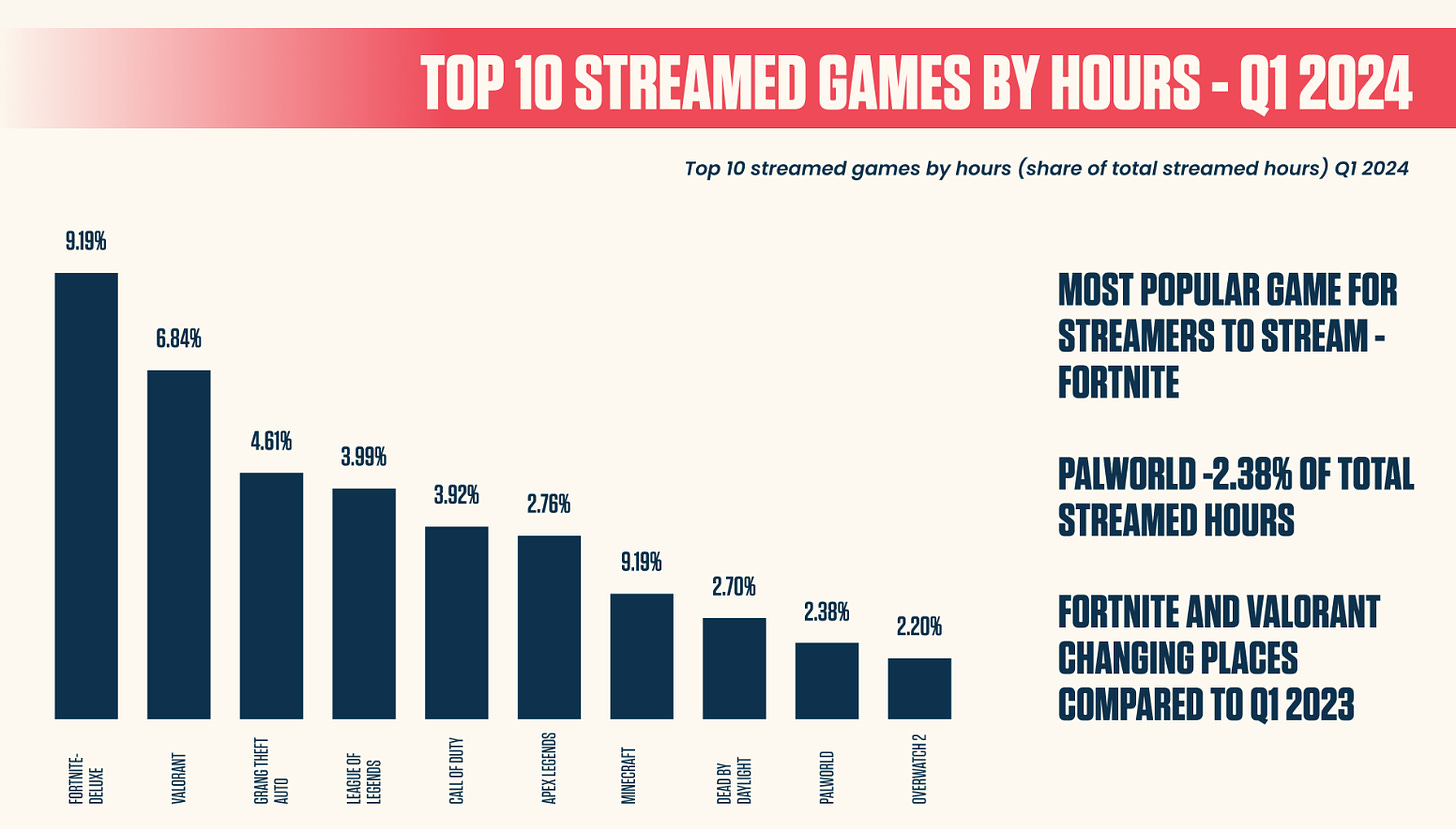 - The number of hours watched on Twitch in April dropped by 8% compared to the previous month. When compared to April 2023, the decline was less than 2%.