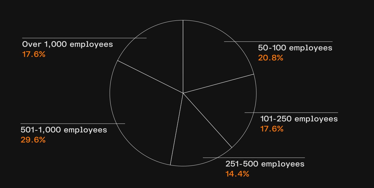 ❗️The decision to create custom technological solutions is predominantly made by large teams. In the survey, 61.6% of the companies had more than 250 employees.