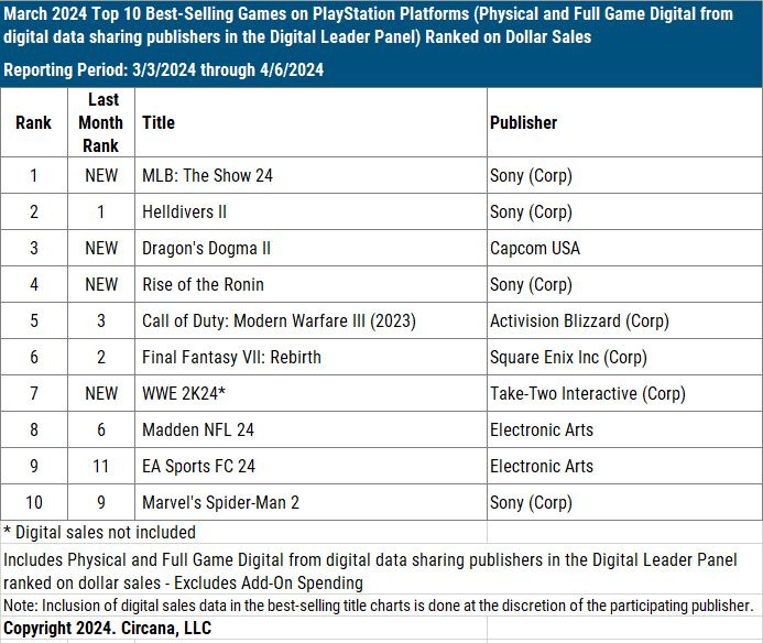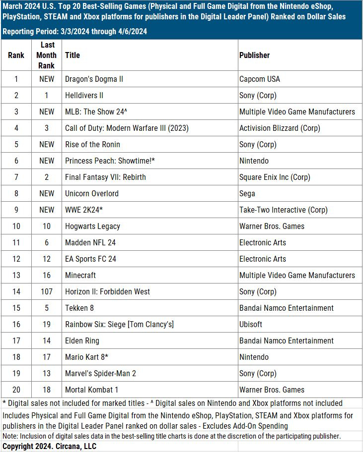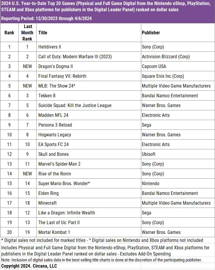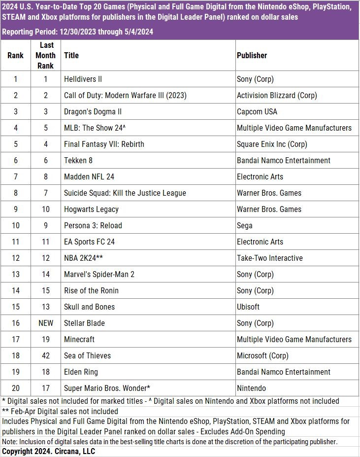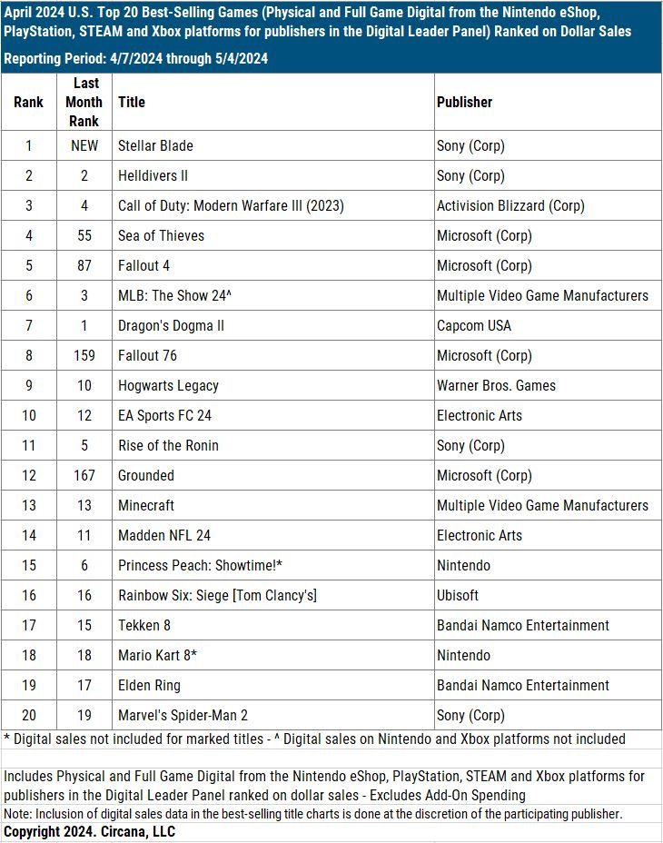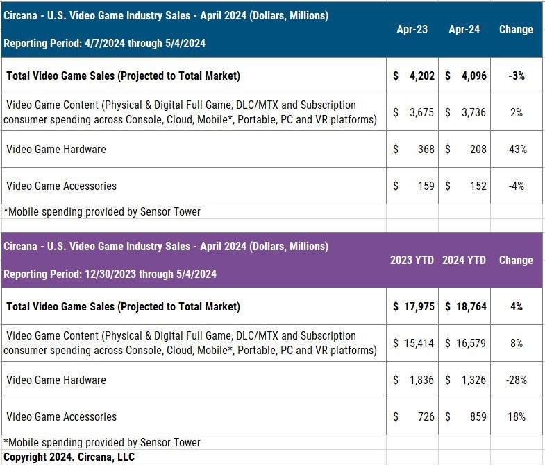 - Circana: The US Gaming Market Decreased by 3% in April 2024
