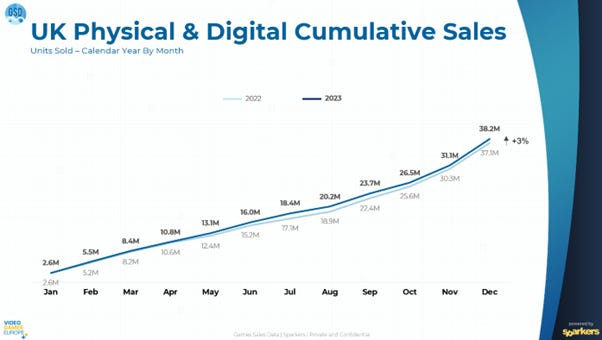 The number of copies sold in 2023 increased by 3% compared to 2022. That's 38.3 million games.