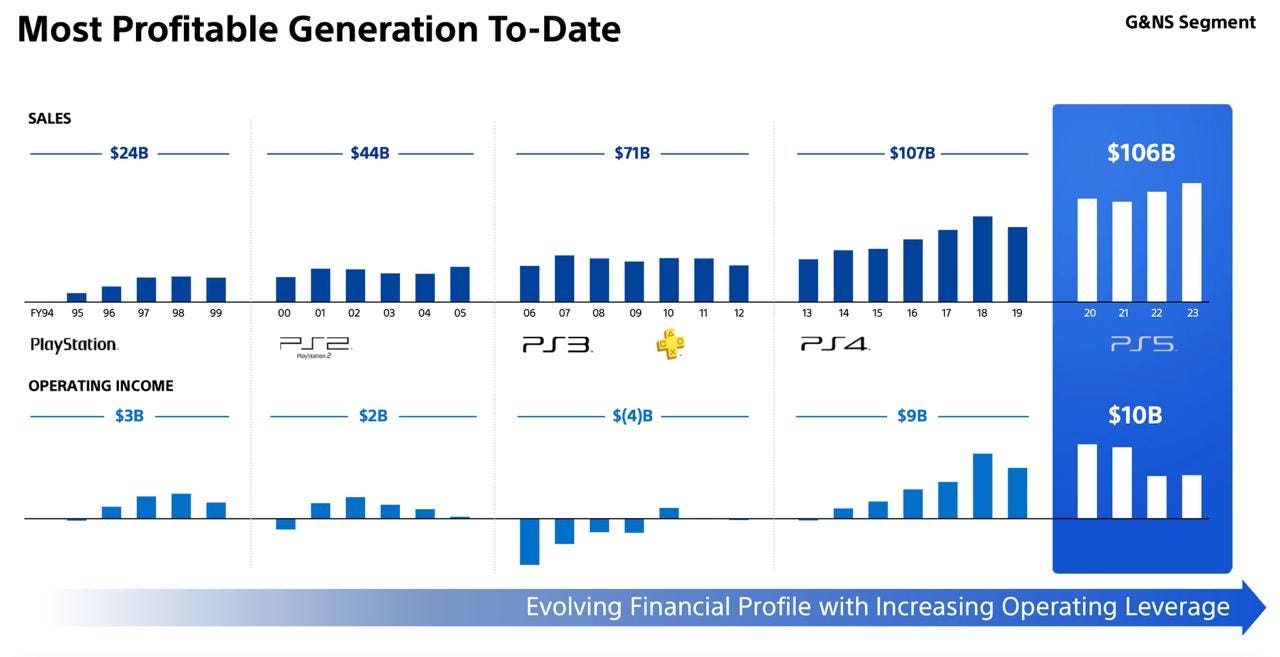 PlayStation 5 is Sony's most profitable console to date. It has already generated $106 billion in revenue (the record is still held by the PS4 at $107 billion), but operating income is already a record $10 billion (compared to $9 billion for the PS4).