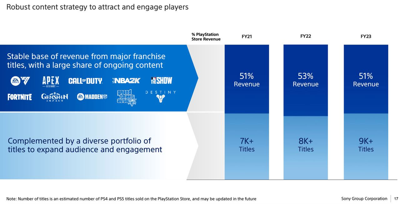 GAAS projects and major annual releases have generated 51-53% of all PlayStation Store revenue for three consecutive fiscal years.