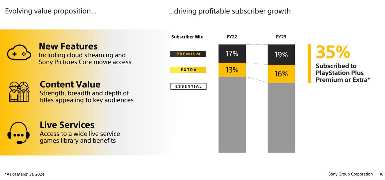35% of PS Plus subscribers are subscribed to PS Plus Premium (+11% YoY) or Extra (+23% YoY).