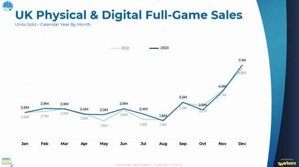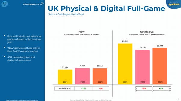 User spending on games increased by 4% - reaching £1.27 billion. Digital sales saw an 8% growth (£785 million), while physical copy sales decreased by 2% (£487 million).