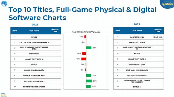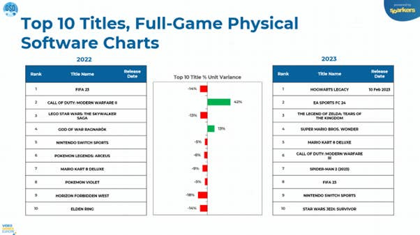 In 2023, games from the top 10 of the British chart sold 2% worse than the top 10 in 2022, considering only physical copies.