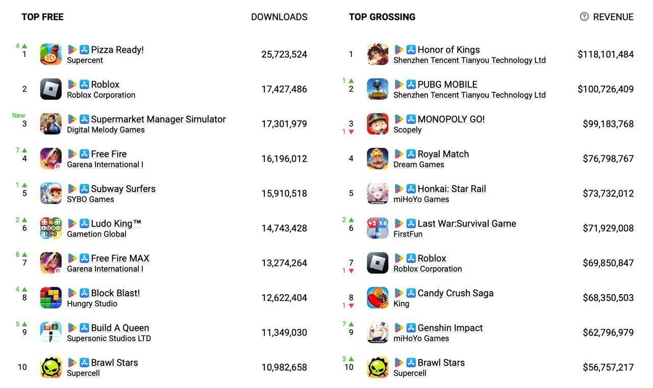 Pizza Ready! by Supercent topped the download chart. In April, the game was downloaded 25.7 million times.