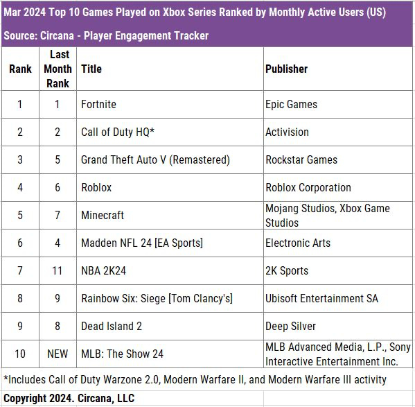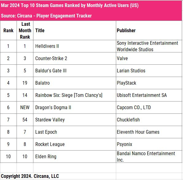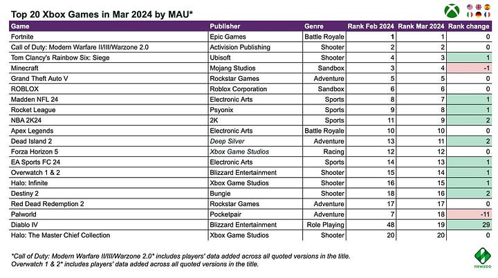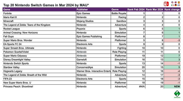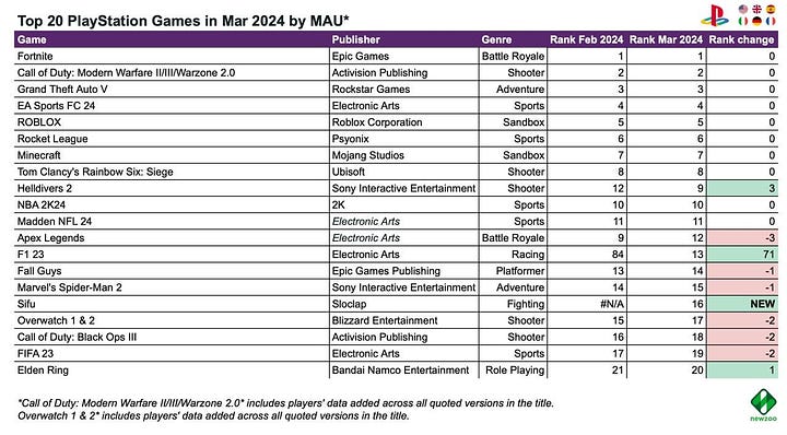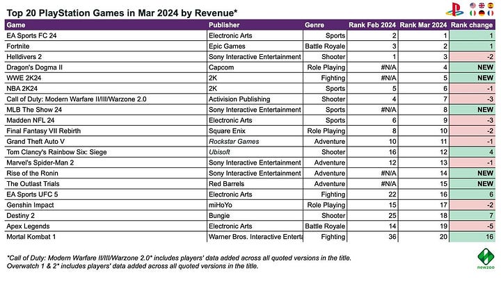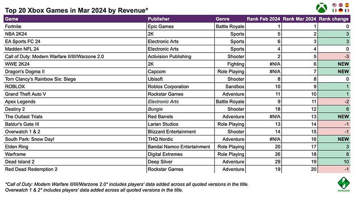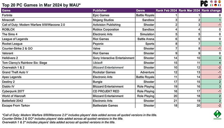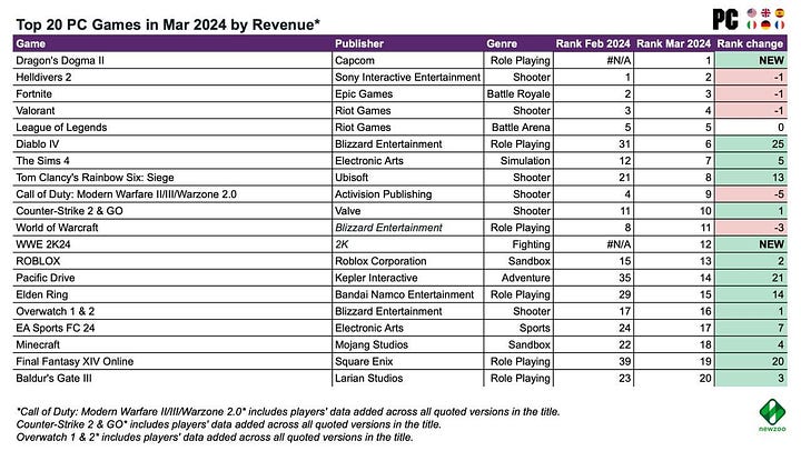 - Newzoo: Top 20 PC/Console games in March 2024 by Revenue and MAU
