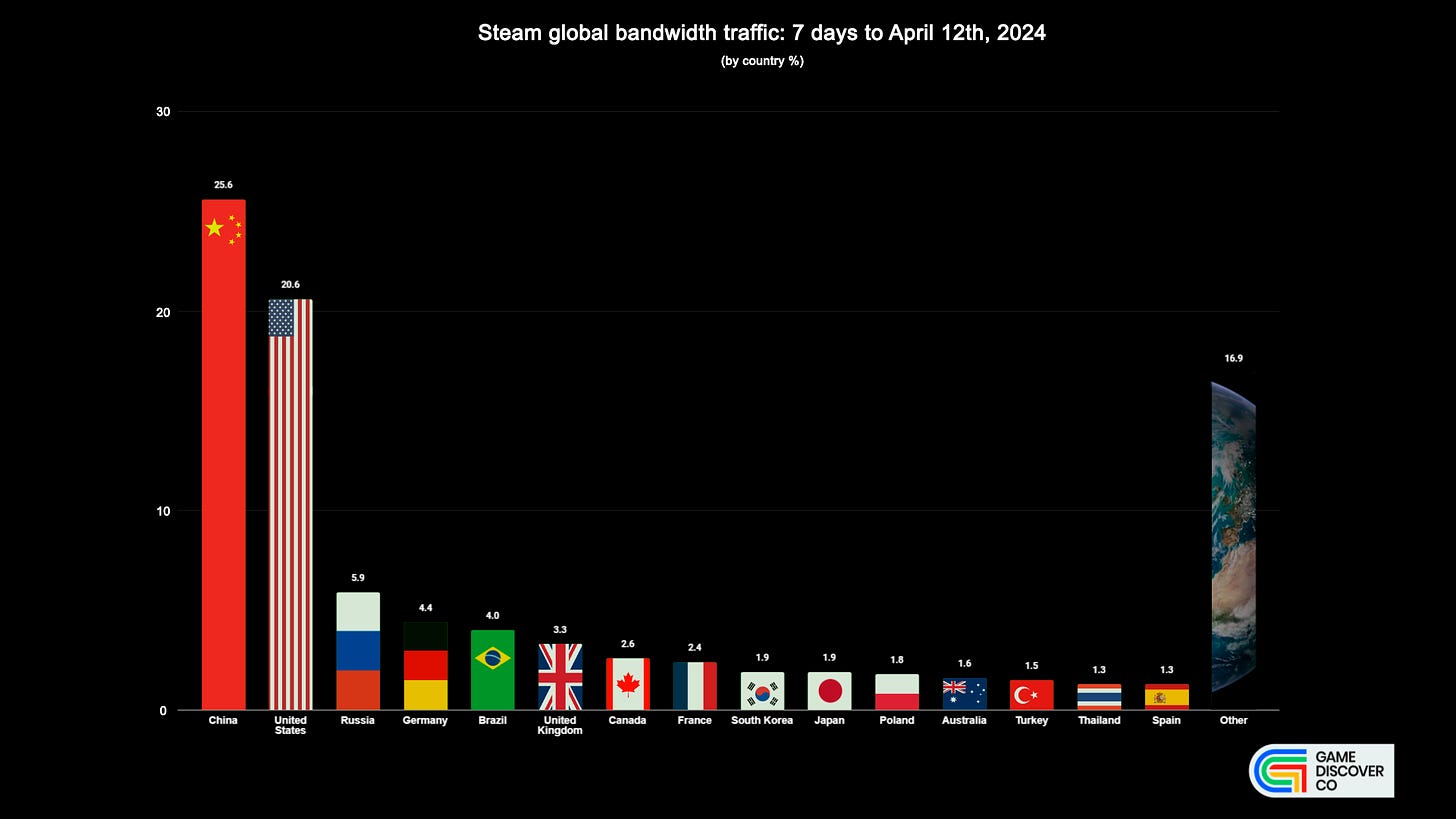 - GameDiscoverCo: Data Consumption in Steam by Country in 2024