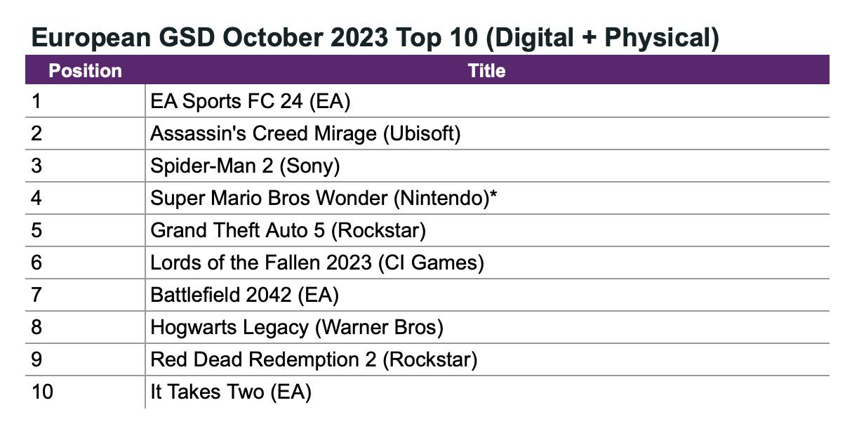 - GSD: Game sales in Europe slightly decreased in October 2023