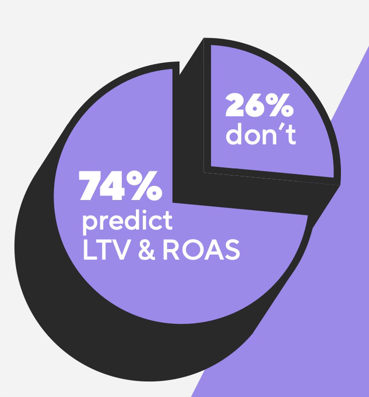 26% of developers do not consider either LTV or ROAS (Return on Ad Spend). Another 32% only look at the horizon for six months. Only 5% try to predict what the ROAS will be beyond a year.