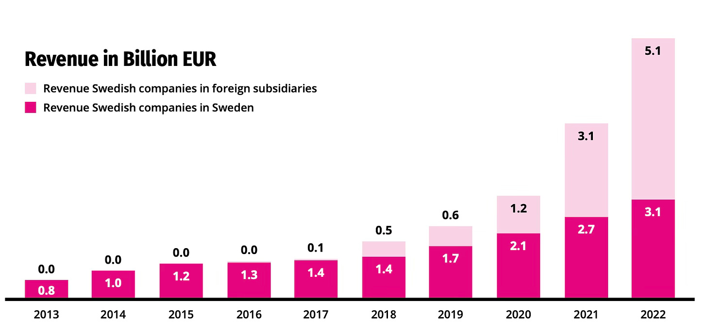When considering foreign subsidiaries, the revenue of the Swedish industry is €8.1 billion (+40% compared to the previous year).