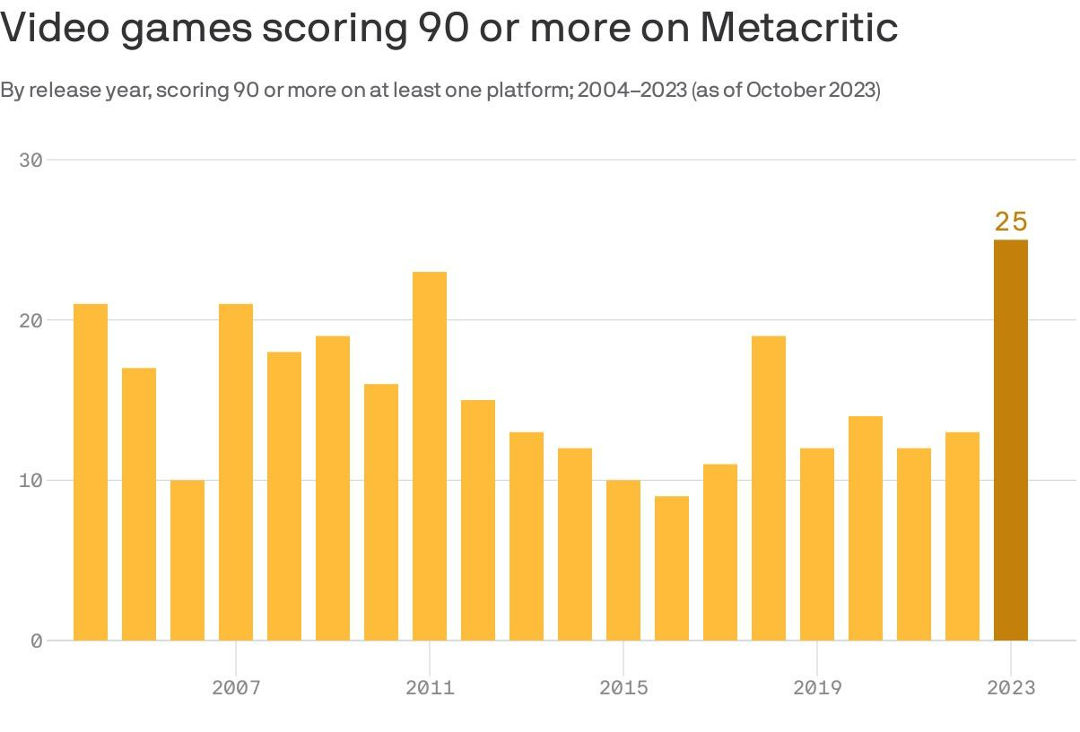 - Axios: 2023 is already a record year for games with 90+ ratings on Metacritic