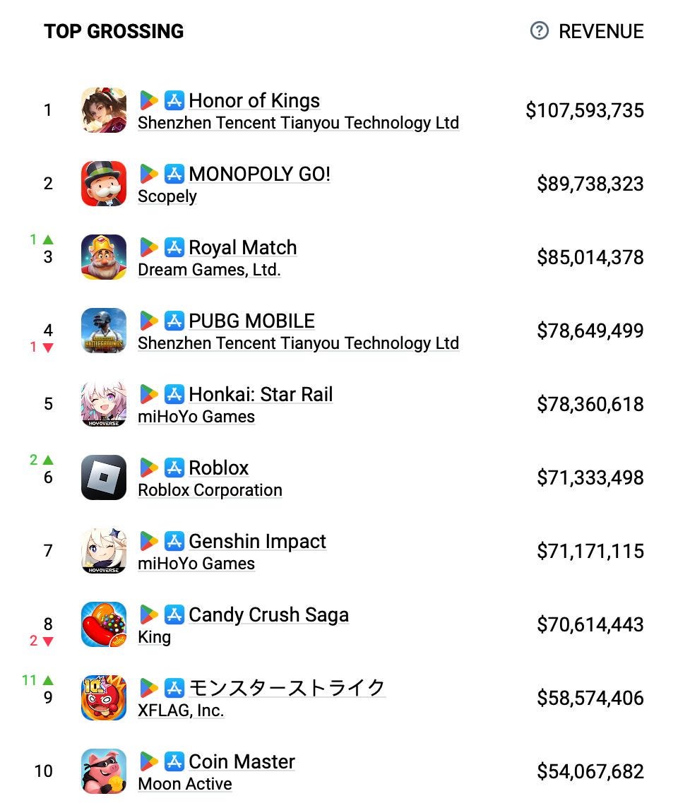 At data.ai, revenue figures are slightly more accurate - $513 million after taxes and commissions, roughly $855 million Gross.