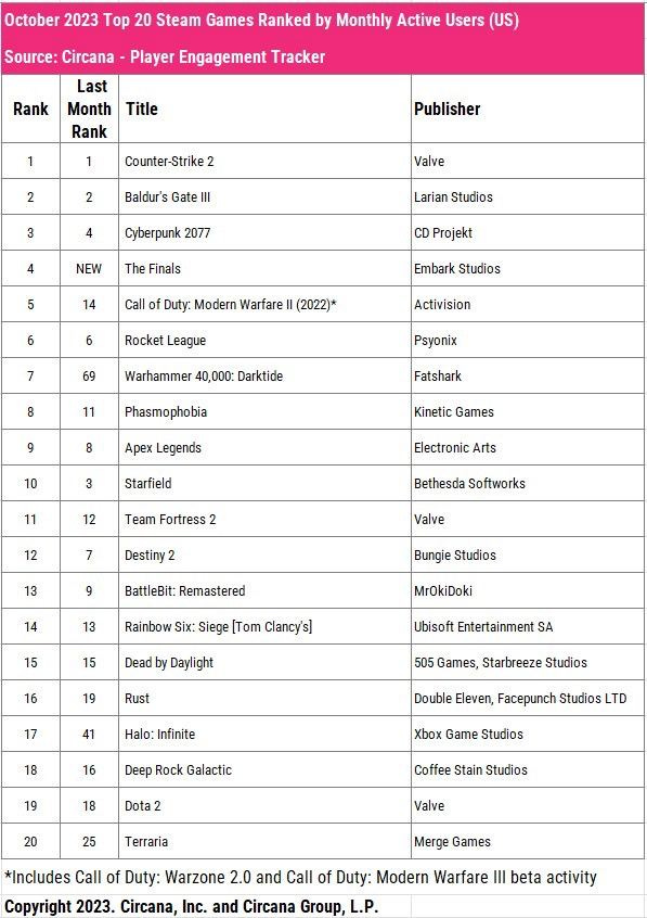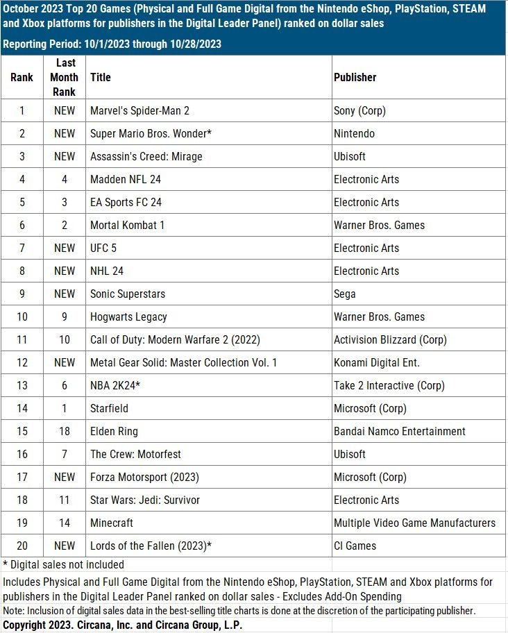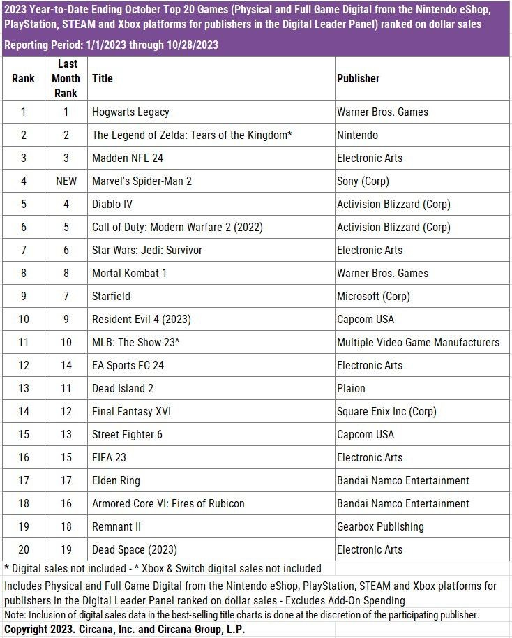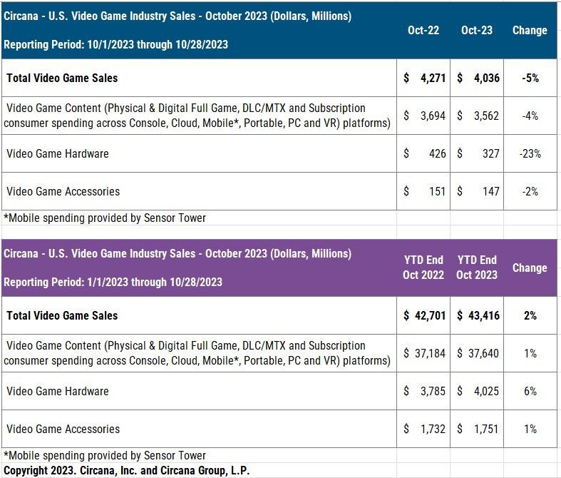 - Circana: The American gaming market in October 2023 fell by 5%