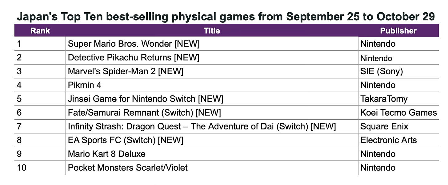 - Famitsu: Super Mario Bros. Wonder became the leader of the Japanese chart in October 2023