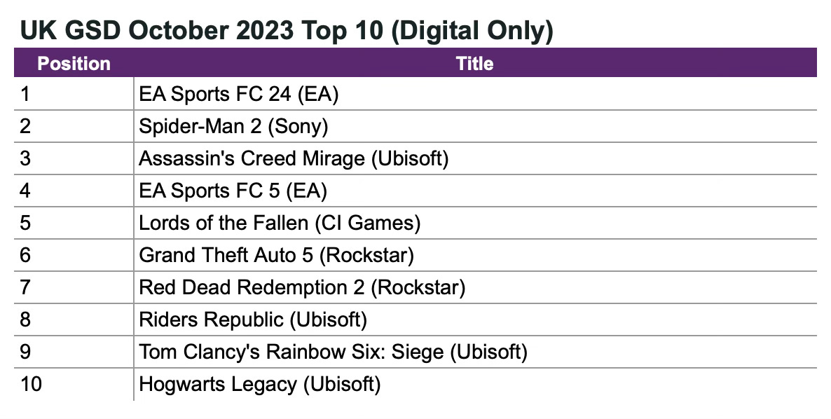 Marvel’s Spider-Man 2 from Sony became the best-selling new game of the month. However, sales in the UK were 9% weaker than the first part but 94% better than Marvel’s Spider-Man: Miles Morales.