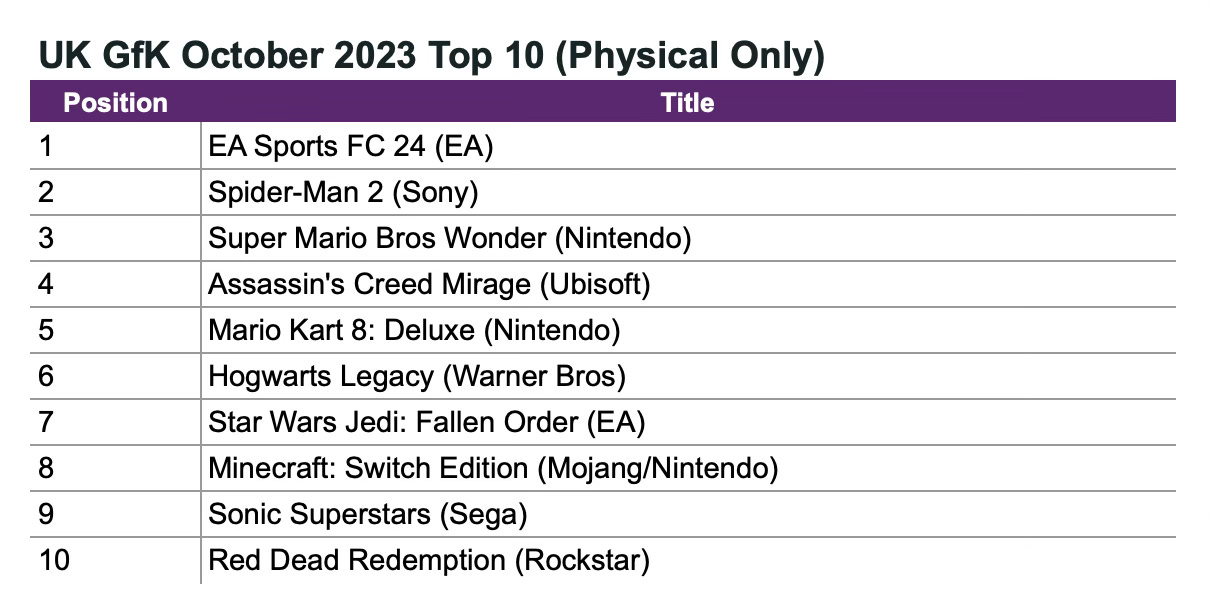 - GfK & GSD: The UK gaming market in October 2023 experienced a significant decline