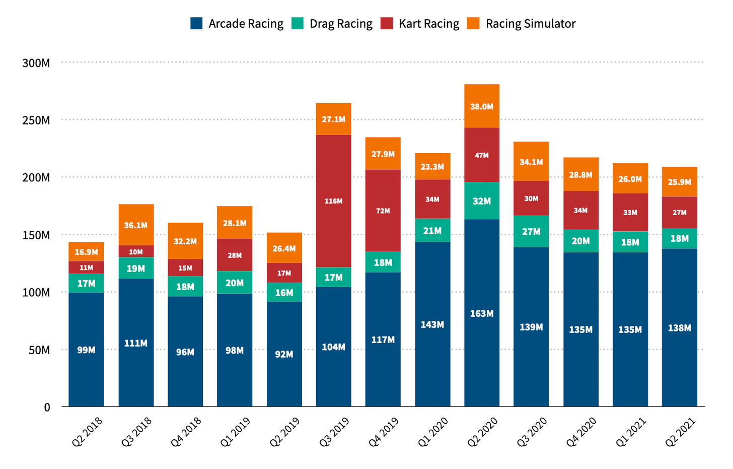Despite revenue growth (Q1 to Q2 2021 the genre received +14%), downloads decreased by 10% same period.